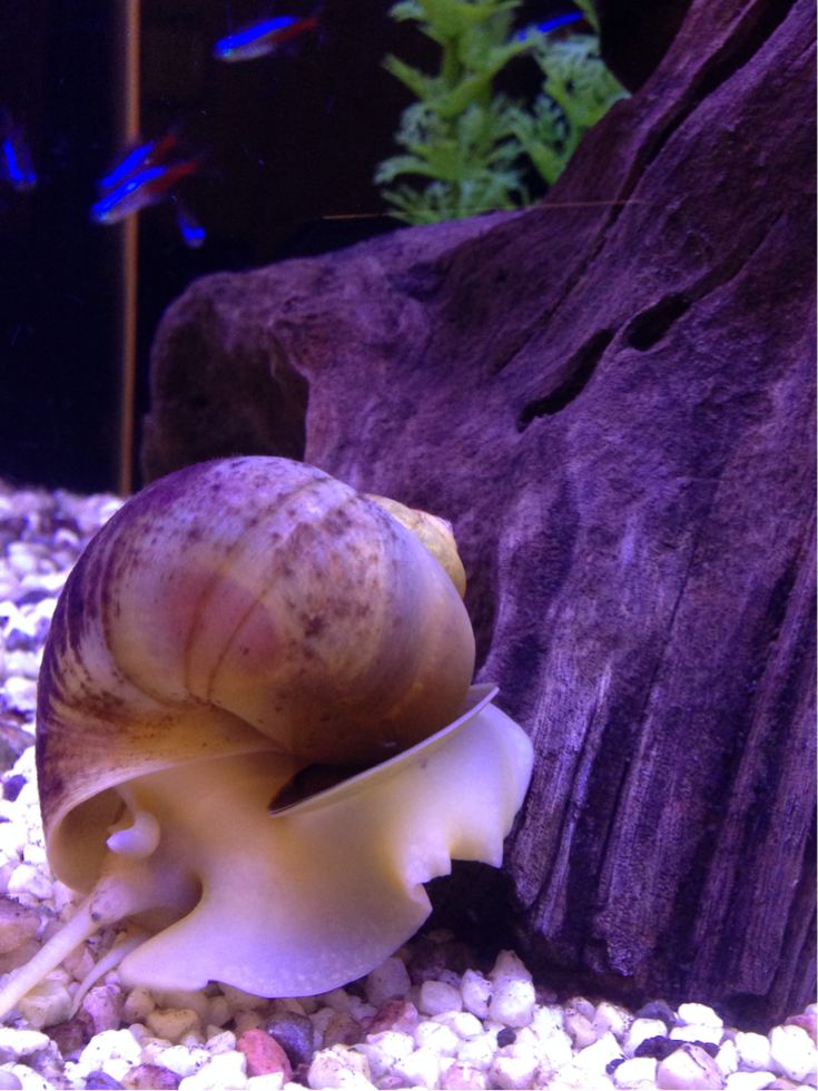 水草も植えられず、キレイな色のネオンテトラの群泳よりも、どどーんとでっかいスネールの存在感の方が抜群のタンク。
