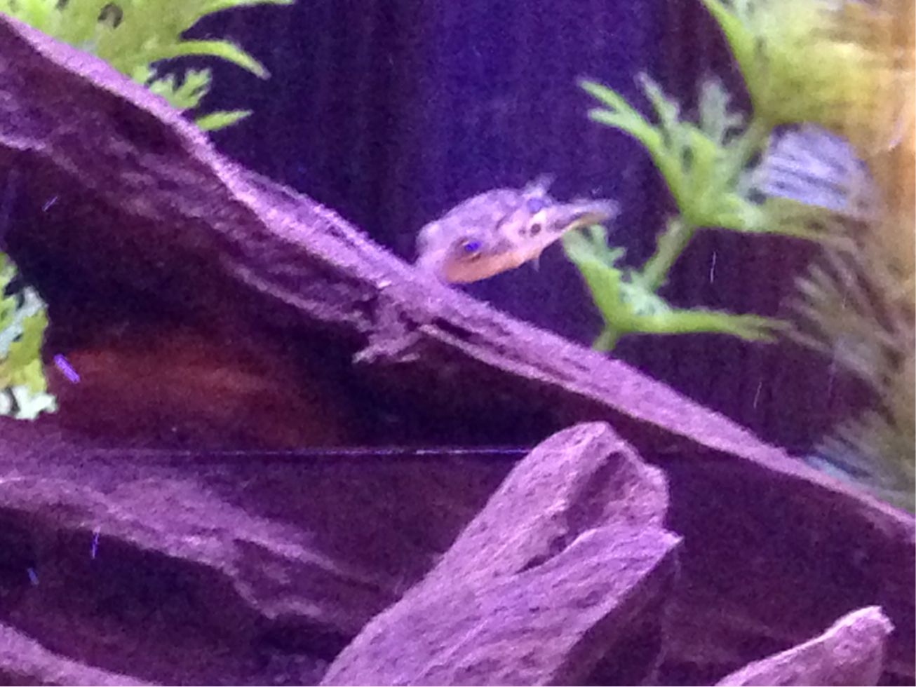 うちにやってきた子がどういうわけか大食漢で、水槽内のコケだけでは物足りず、私が一年かけて流木に活着した「アヌビアス ナナ」という水草まで食ってしまった・・・。