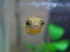 体長約3センチ、ダシも出ないような小さなフグは調べると「アベニーパファー」というアマゾン河下流付近の汽水(海水と真水が交わるところ)地域に生息するフグだと言うことが分かった。(淡水フグとして扱っているショップもありますが)