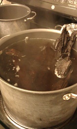 夜中の作業だったのでその日は煮上がった(?)流木をそのままお湯を張ったバケツに漬け込んで終了。