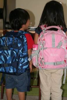 アメリカの宿題ってハンパじゃないし、教科書も分厚いそうなのでキンダーといえども荷物は多め。