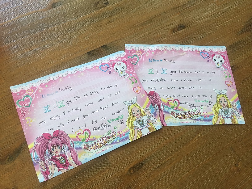ママ大好きだよ。怒らせてごめんなさい。ランチを食べた後、次の試合で自分が何をするべきなのかが分かりました。本当にごめんなさい。次は一生懸命頑張ります。」