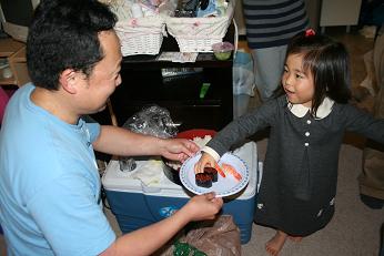 クーラーボックスにネタはもちろん、自前の包丁なども持ってきていただいて、バースデーガールの里花には大好きないくらとエビを握っていただいた。