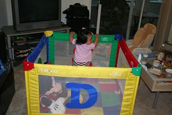 こちらでは大きなカゴみたいなものが主流のようですが、パネルを組み立てて柵にするタイプの物もあります。カゴタイプは折りたたんで持ち運びができるのでアウトドアのときに便利だし、柵タイプは形や大きさを自由に変えられるのが魅力的だし、 でかなり迷ったのですが、カゴタイプにすることにしました。