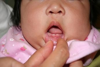 今日、指しゃぶりをしている手に赤くこすれたような部分があったので、「もしや」と思い、里花の下唇をめくってみると・・・。