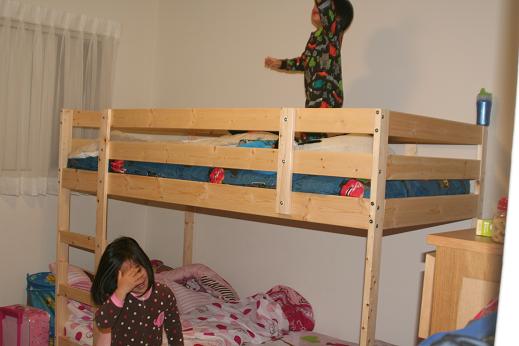 パパが買って、作ってくれた2段ベッドで嬉しそうに寝転がる子供たち。
