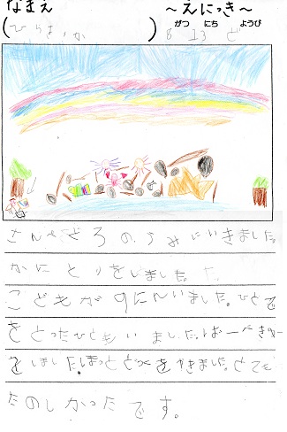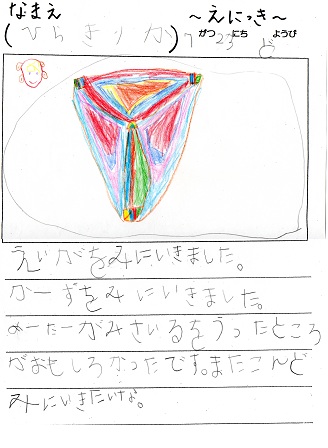 うまく説明ができなくって、「楽しかったことや心に残ったことを絵に描いて、ここに文を書くんだよ」と言ったら