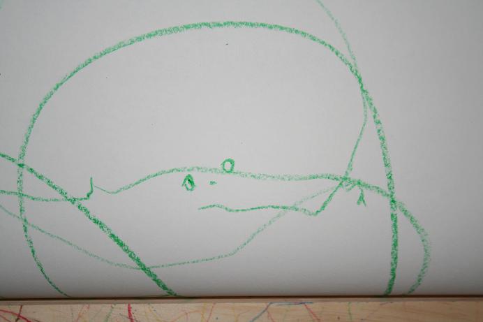 書きながら「これはおめめ」とか言っているので、本人も顔を書こうとする意識があるみたい。