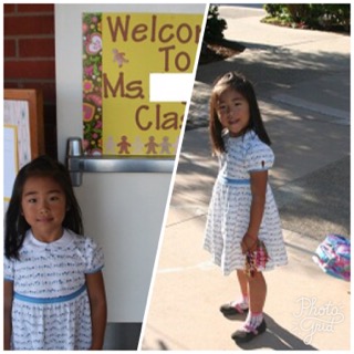 キンダーガーデン初登校の写真を見比べると本当にお姉さんになったわー