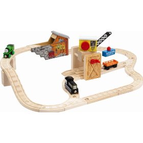 トンネルやクレーンが途中にあるレールセットで、手で動かすトーマスもついていたけど、電池で動くタイプをレールに乗せてずーっと眺めてる。
