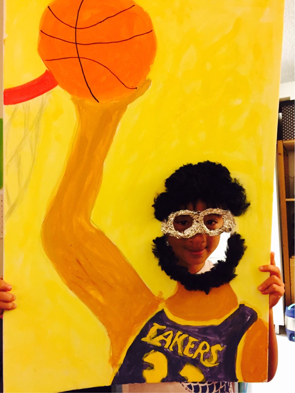 くり抜いた部分に自分の顔をはめ込んで、