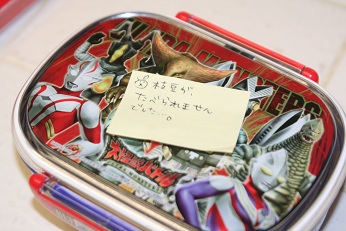 ・・・ポストイットに手書きのメッセージがお弁当箱に貼り付けてありました。