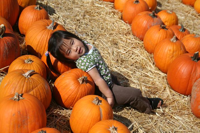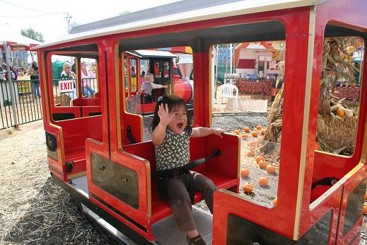 はにーちゃんが調べたロングビーチのパンプキンパッチ場まで車で約30分。移動式のメリーゴーランドや、子供用の観覧車の隙間を埋めるようにかぼちゃがいっぱい並んでる!