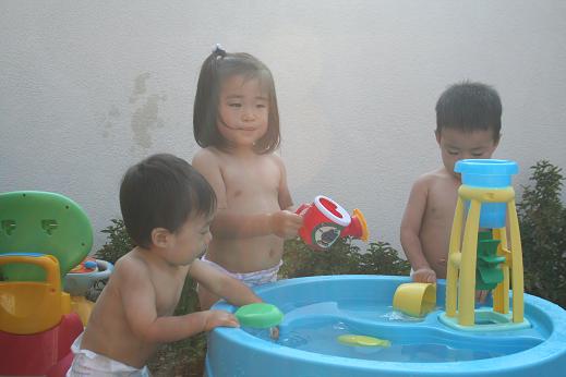 で、水遊びテーブルで遊びました。