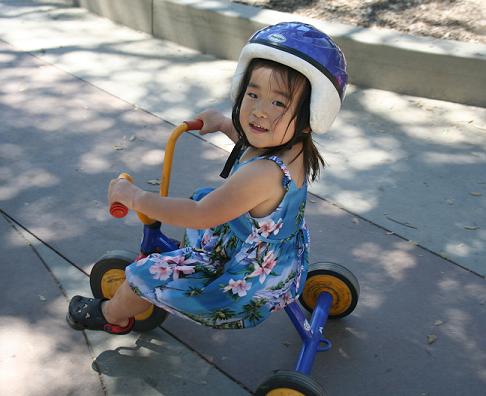川遊びに飽きてきた里花は三輪車コーナーへ