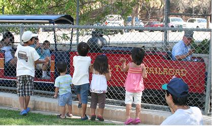 電車は公園内を2周もする。今までモールとか、公園とかでいろんな電車に乗ったけど、ここのは大きくて煙もむせるほど(!)吐いて、ガタンゴトン・・・といい音を出して走ってくれる。航ちゃんもすごく楽しそうでした。