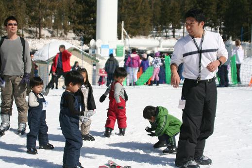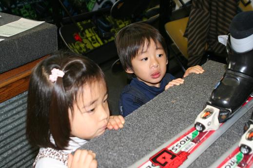 スキー板をレンタルしている段階から子供たちはやる気マンマンで