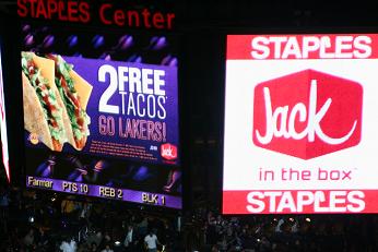 本日の試合でLA Lakersが100ポイント以上で勝利し、相手チームが100ポイント以下で負けた場合、入場者全員に「2 Free Tacos」がもらえるとのこと。