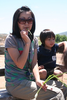 途中、生野菜をそのままかじれと渡され、「ねぎ、にがっ!」と顔をしかめながら・・・