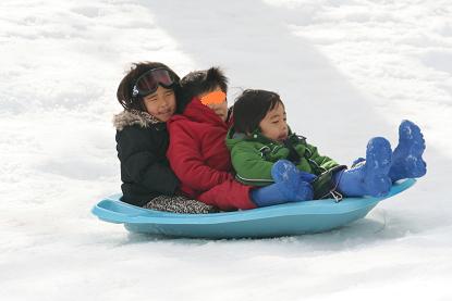 すっごい上から滑ってくる人、小さ目の丘で何度もこけてるおちびちゃん。