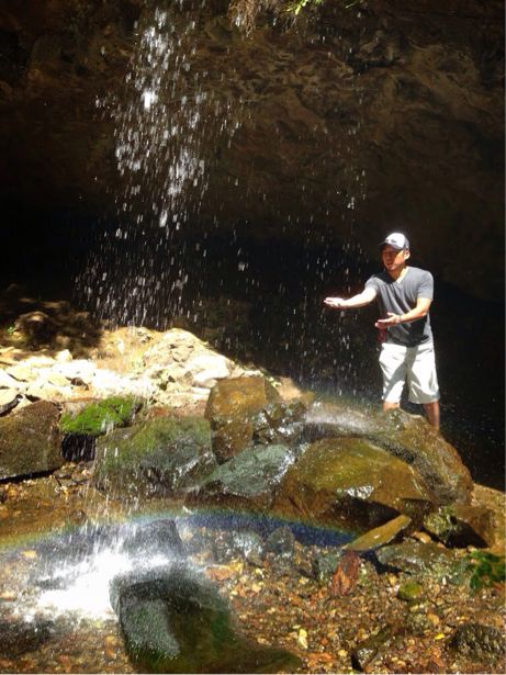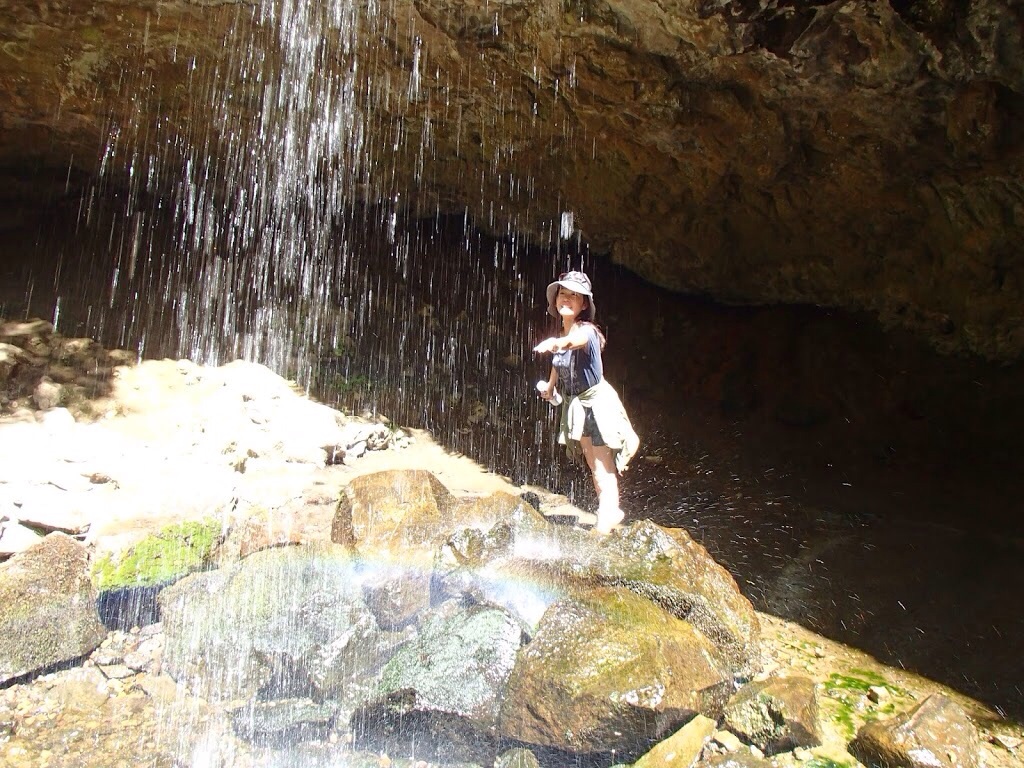 それでも時間帯が良かったのか、石に打ち付ける水がキラキラと反射して虹が見える。