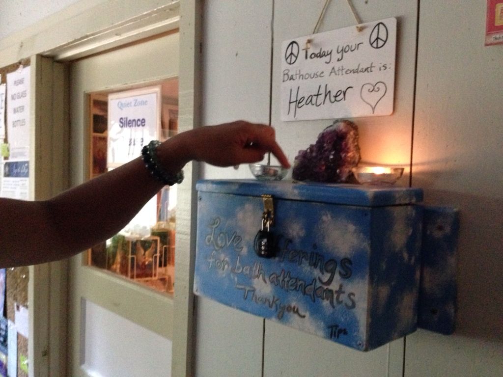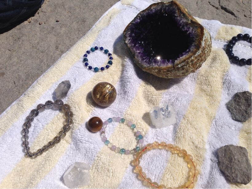 個室やサウナがあるコーナーにはたくさんのパワーストーンが置かれ、