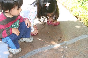 最近「かたつむり」の存在を知った子供達は、雨になるとどこからともなくやって来る「かたつむり」に興味津々。