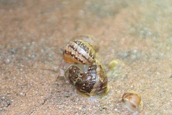 葉っぱの陰でひっそりと眠っているカタツムリをはがし、