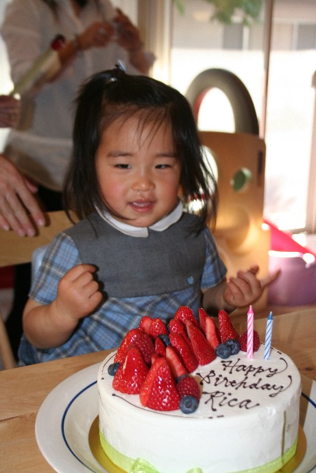 それにしてもバレンタインの写真、里花ちゃんがカメラ目線でなく、ケーキに釘付けなのが笑えます。