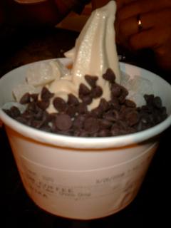 はにーちゃんはコーヒー味にMOCHIとチョコレートチップを乗っけて・・・。