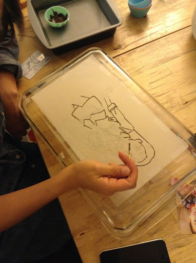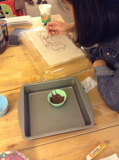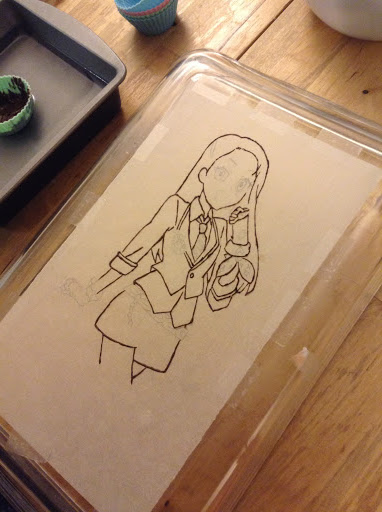 湯銭やレンチンで溶かしたチョコレートでまずはアウトラインを書いていきます。