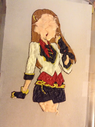 写真を拡大すると見えるかもですが、手袋の模様(ブルー)は最初のチョコでアウトラインをとらず、
