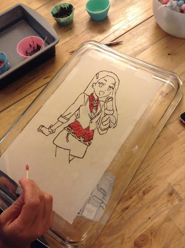 アウトラインのチョコが完全に固まったら色付けに入ります。