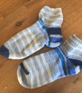 練習用なので、左右つま先とかかとの編み方を変えています。
