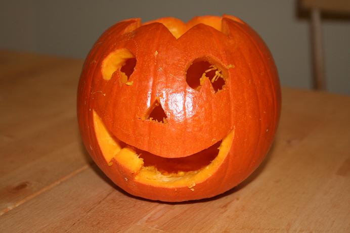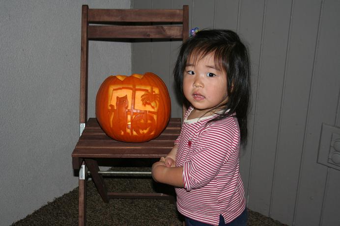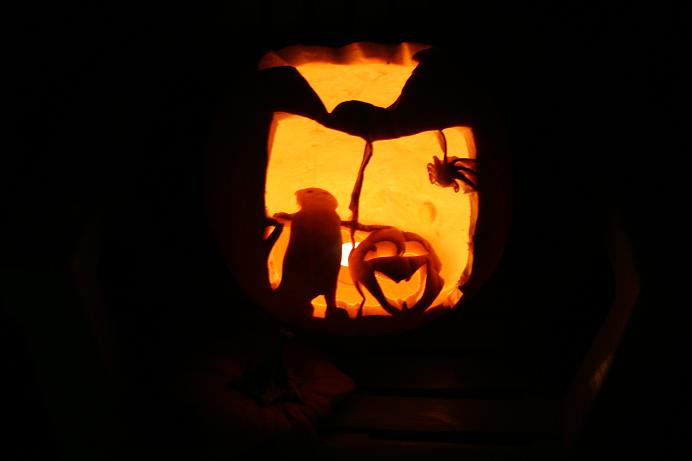 で、その日の晩負けじとトモミも小かぼちゃの方を彫りました。