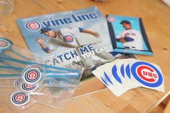 Cubsのロゴ入りストローと、ステーッカーがたくさん