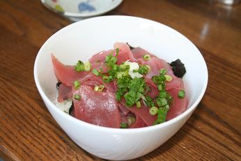 はにーちゃんが会社からマグロのお刺身を持って帰ってきたので、いとこのマコさんにおすそ分けをすることになった。
