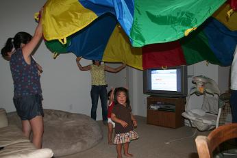幼稚園などにあるパラシュート。マコさん持ってました。