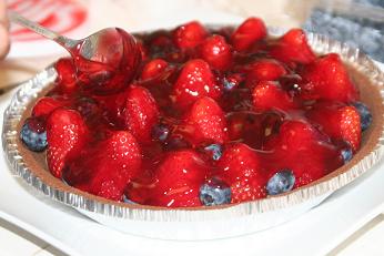 イチゴとブルーベリーを並べて最後にグレーズ。