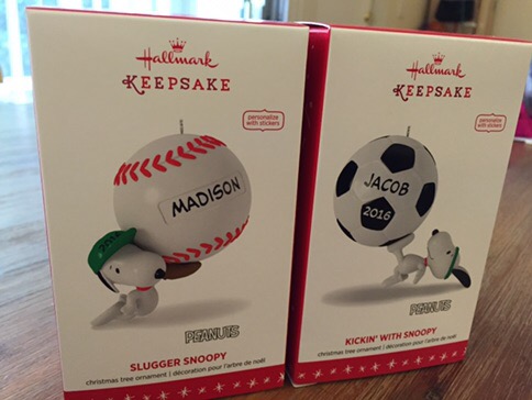 私の大好きなスヌーピーがサッカーと野球をしてるオーナメント。