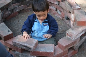 航晴もファイヤーピットのレンガで積み木遊びしてたっけ。
