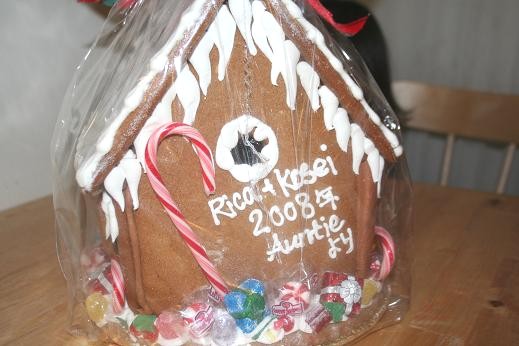 うちでは年が明けたら「鏡開き」のごとく、このジンジャーブレッドハウスを壊してみんなで食べまーす!