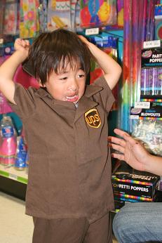 コスチューム嫌われるとホント困るよね。うちも写真のUPSやら、郵便局員やら、フツーの洋服っぽいのも着せたけど帽子がー! で断念。