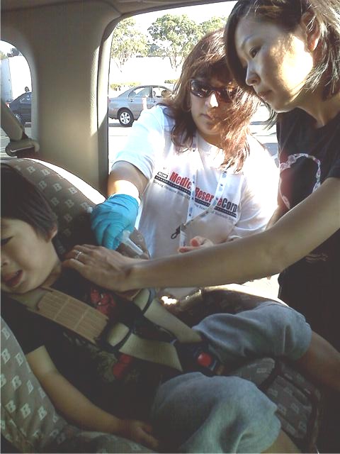 だけど結局順番が回ってきて、エンジンを止めた後に対応してくれた人が言うには、子供でも鼻スプレーの方がいいわよということだったけど、