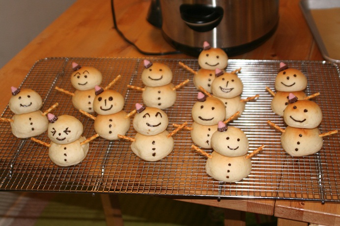 帽子はアポロチョコ、手はプリッツ。頭と胴体を固定するにもプリッツを使いましたが、食べるときには湿ってた。