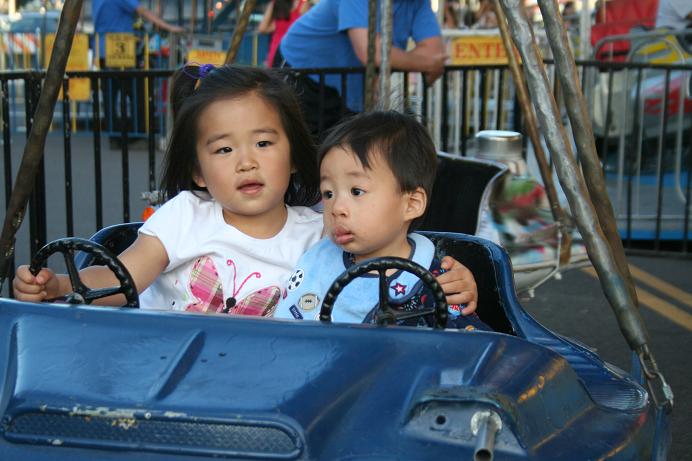 いろんな出店や、移動式遊園地が設置されていて、初めて見るアメリカのお祭りに母はとても興味深げだった。