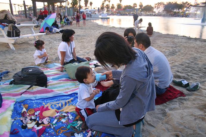 去年は近くの公園で上がった花火を道路沿いから眺めていたのだけど、今年は母もいるし、きちんとしたところで見たいなあと考えた結果、Redondo beachにあるLAGOONで見る事にした。