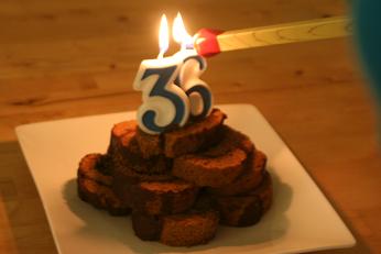 パパの好きなチョコレート味のロールケーキを土台にバースデーケーキを・・・