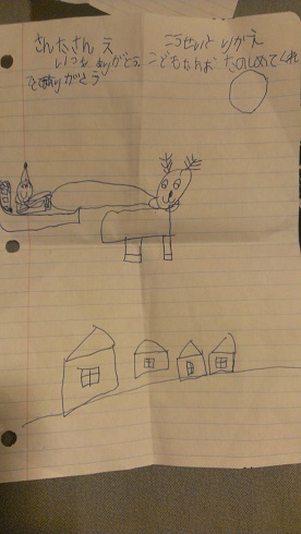 日本語補習校で何かの絵本を読んだ航晴は、サンタさんは寒い国に住んでいるから手袋を買ってあげたいと言いだし、ならご自分のお金でどうぞー♪ と、ダイソーで買ってたw