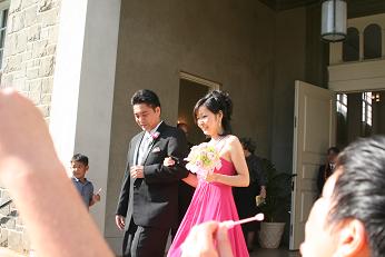 控え室で結婚証明書にサインをして参列者が待つ教会の外へ出ますが、